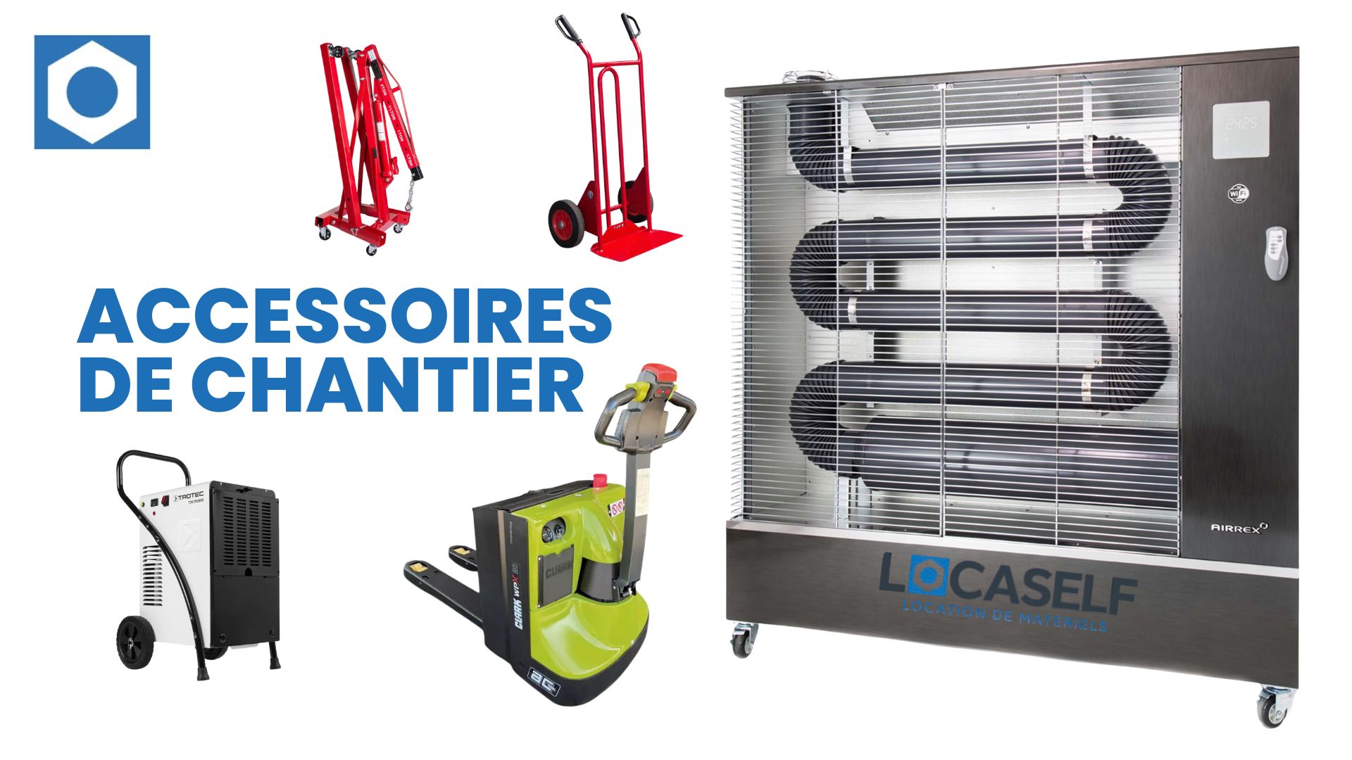 Locaself, enseigne spécialisée dans la location de petits matériels de TP, de motocultures et jardinages, d’électro -portatif, ponceuses de sols, nacelles et échafaudage, chauffages….